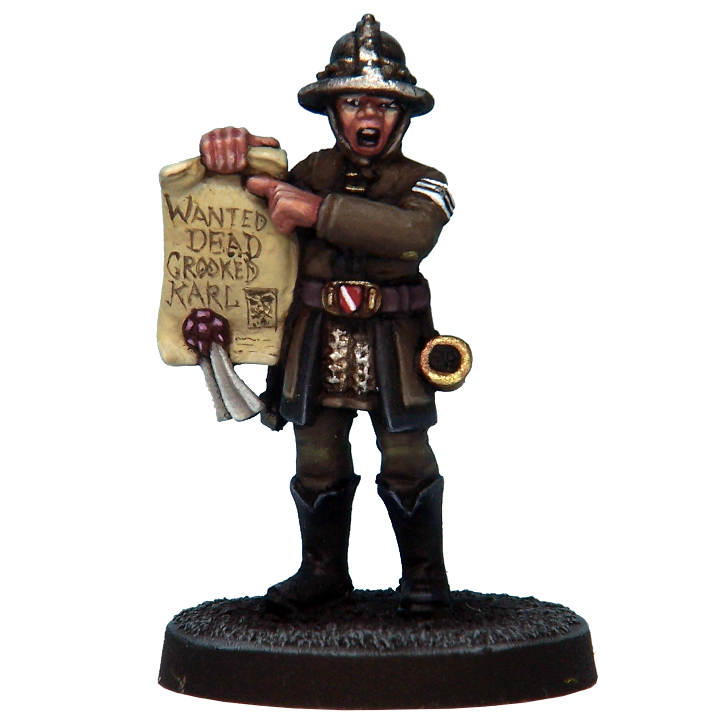 Sculpted by Mark Evans. Cast in white metal. Painted for display by Mystic Spirals. Supplied unpainted and with 25mm round slottabase.