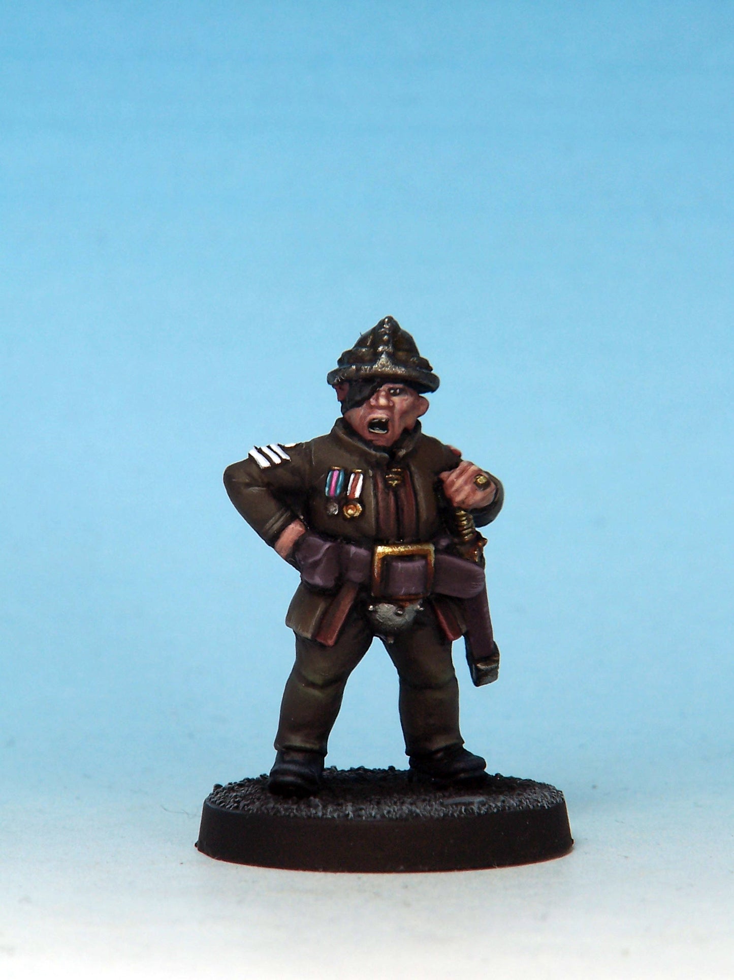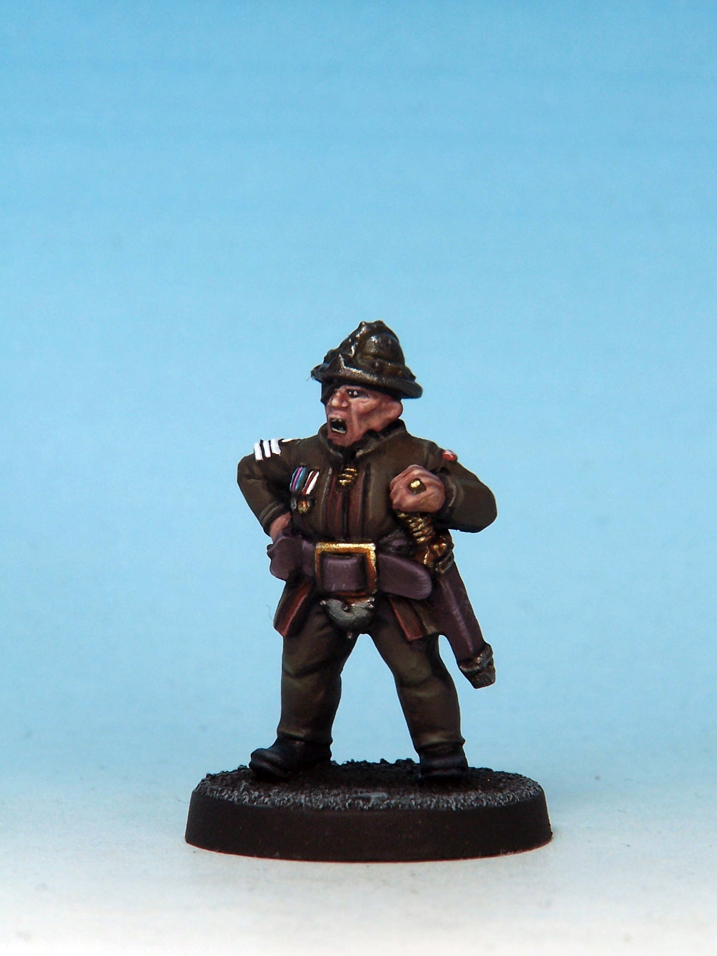 Sculpted by Mark Evans. Cast in white metal. Painted for display by Mystic Spirals. Supplied unpainted and with 25mm round slottabase.
