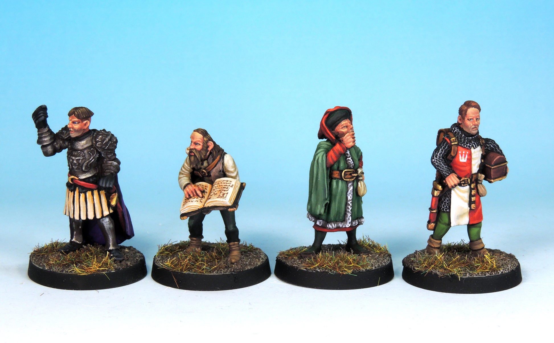 Someone has to manage the day-to-day running of the Keep whilst adventures are off exploring the perils of the Borderlands! Taking care of business inside the walls are the Castellan, Merchant, Scribe and Squire.
